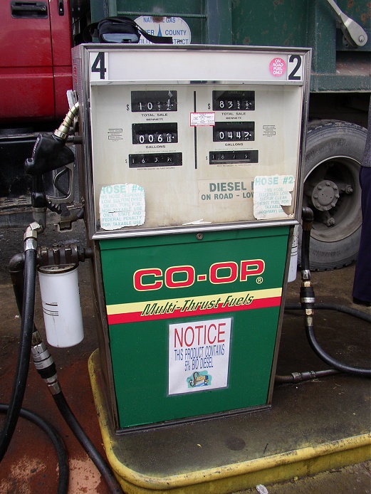 The Sevier Farmers Co-op held a ceremony on Tuesday, January 4, 2005 to show-off their new on-road diesel product which contains 5% biodiesel. The Co-op offers B5 to their fleet customers and to the general public at their main location at 321 Main St. in downtown Sevierville through two pumps--one for the fleets and one for the general public. It is a significant event in that it is a first-of-its-kind for Tennessee, where all of the on-road diesel offered has a percentage of biodiesel in it. Darrell Clark deserves kudos for heading the effort to make this step for his community and country!